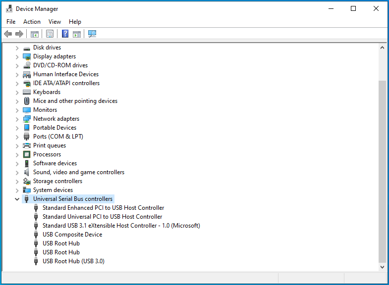 - In Device Manager, locate the Universal Serial Autobus Controllers choice and double-click information technology to aggrandize the entry.